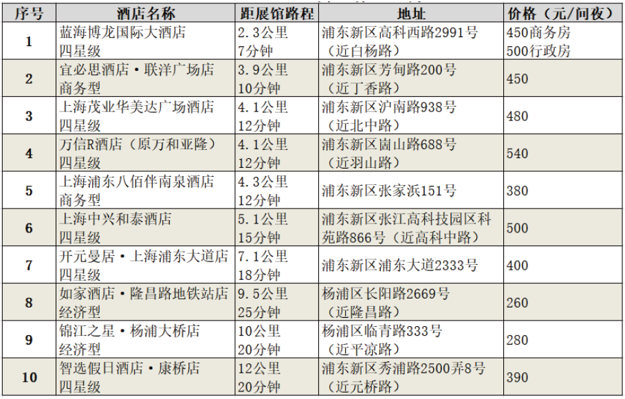 会期酒店列表